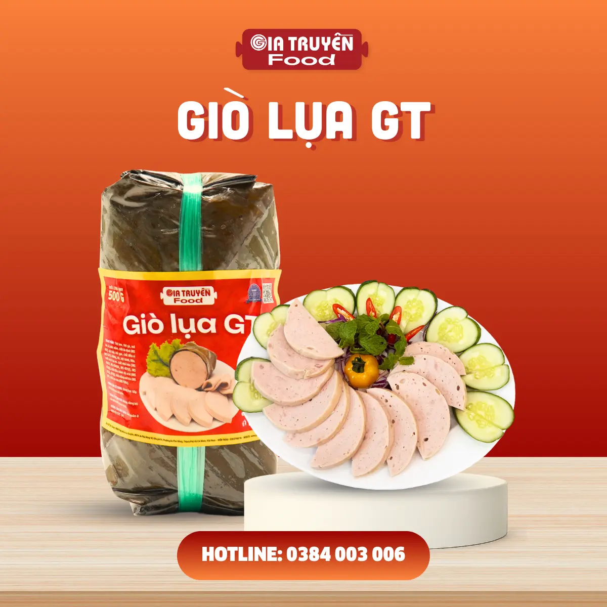 Giò lụa GT là một trong những nguyên liệu không thể thiếu tạo nên hương vị thơm ngon cho những ổ bánh mì đặc trưng của Việt Nam. Giò Lụa Bánh Mì Gia Truyền Food không chứa hàn the, đảm bảo vệ sinh ATTP.